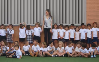 La Reina, quien ha descubierto una placa conmemorativa del inicio de curso a las puertas del colegio, ha sido el centro de atención de los alumnos, quienes se han acercado a ella con gran curiosidad para conocer a Su Majestad, a quien también le han preguntado por cómo habían comenzado las clases la Princesa Leonor y la Infanta Sofía y a quien han dado abrazos, besos e incluso han peinado.