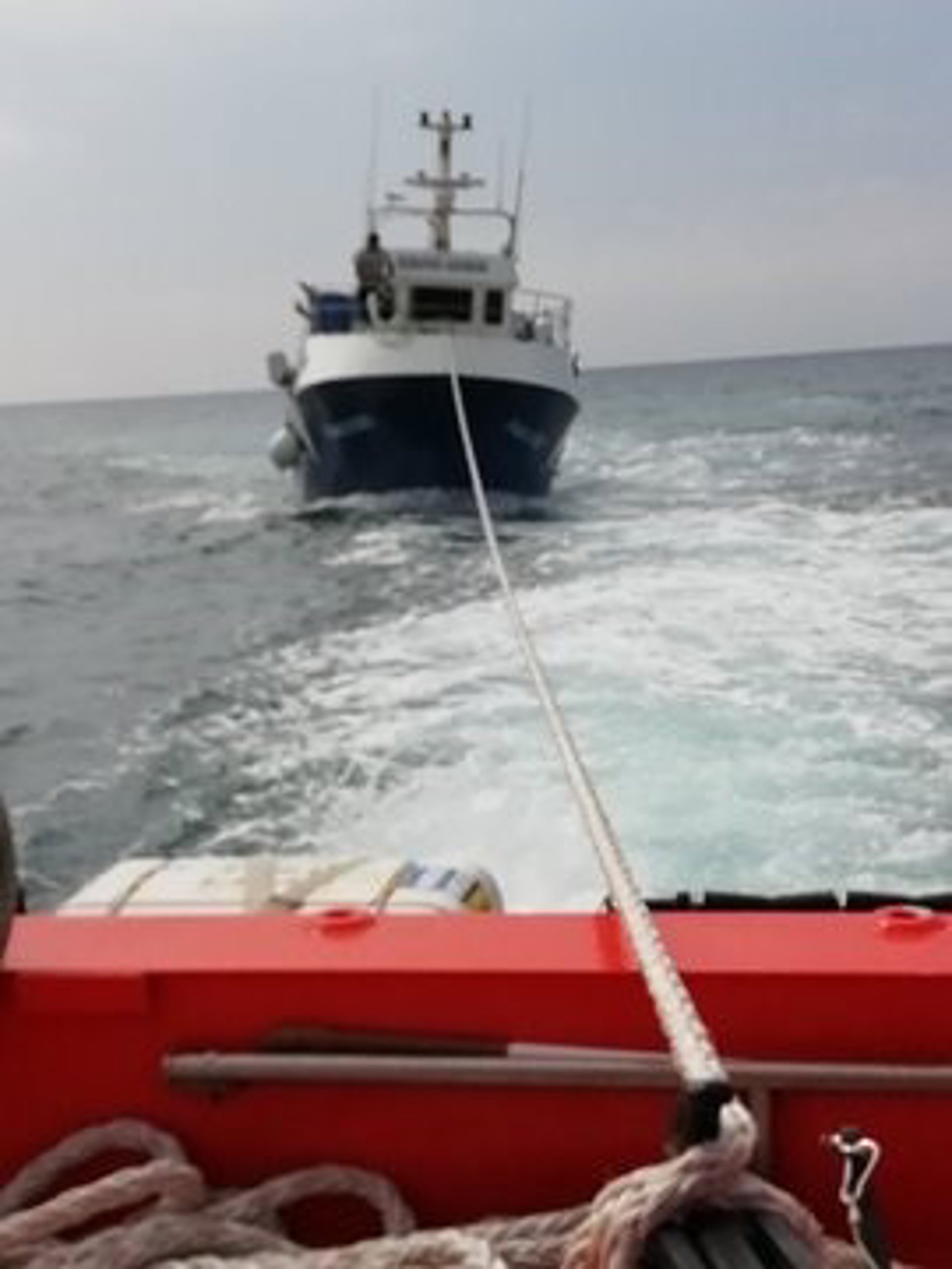 Tras informar los ocupantes de la nave de que la vía estaba en principio controlada y que se dedicaban a achicar agua, se contactó con otros pesqueros de la zona, comprobándose así que el barco disponía de radiobaliza, que todos los tripulantes estaban en buen estado y que el motor no arrancaba.