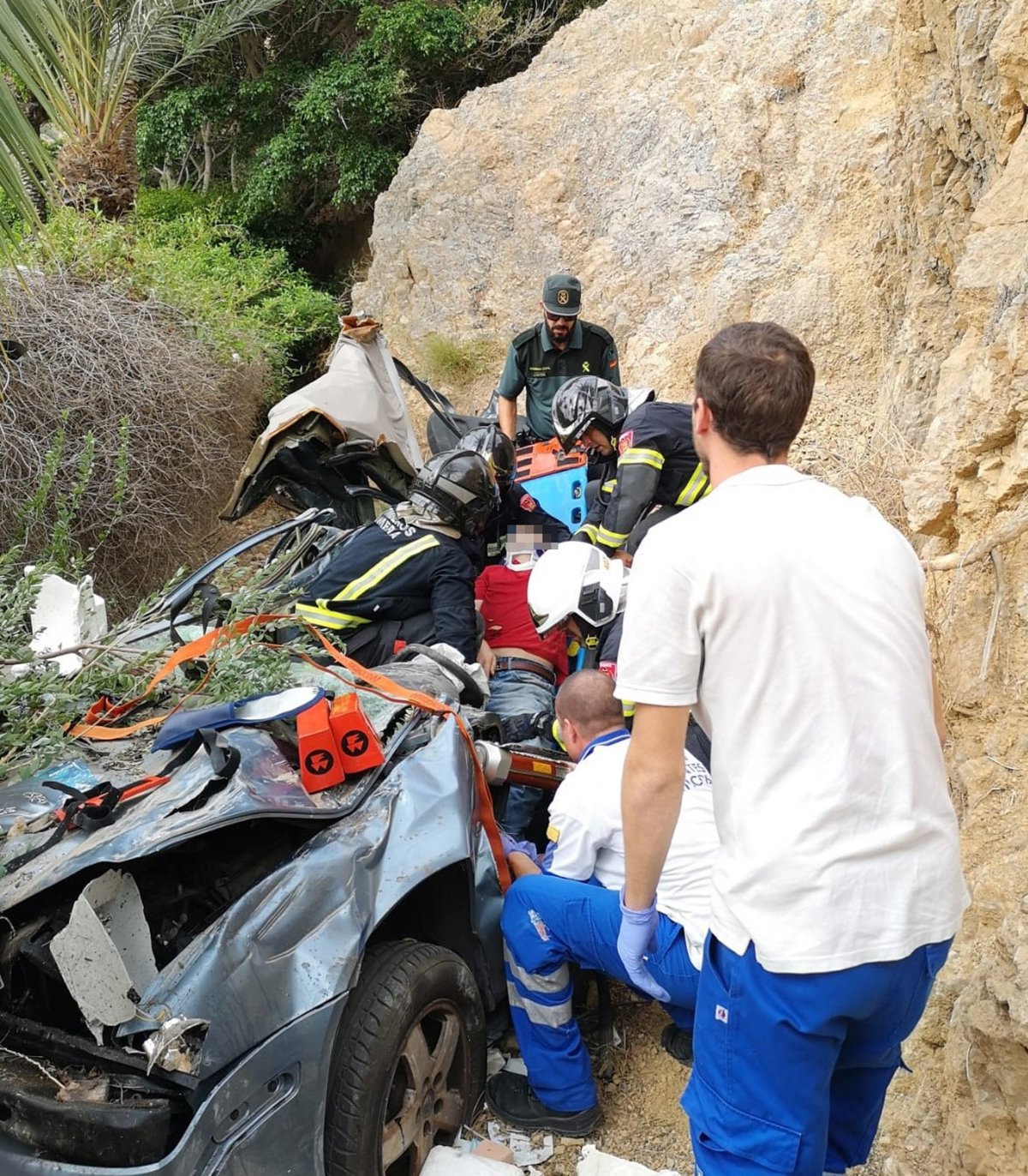 Los bomberos de Almería han rescatado este lunes a un hombre de 51 años y de nacionalidad española después de que se precipitara con su vehículo desde una altura de unos diez metros en el tramo de la antigua N-340a conocido popularmente como El Cañarete, a la altura de El Palmer, en el término municipal de Enix.