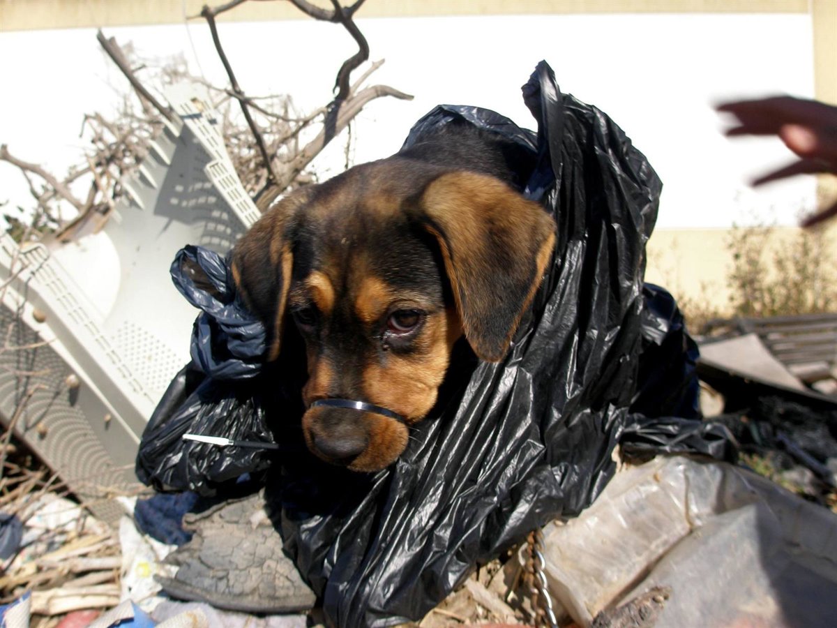 Voluntarias de la asociación proteccionista La Huella Roja de Almería han rescatado a una cachorro que fue encontrada en una escombrera dentro de una bolsa de basura, con las patas retenidas y una brida en el hocico que le impedía abrir las fauces tanto para comer como para ladrar.