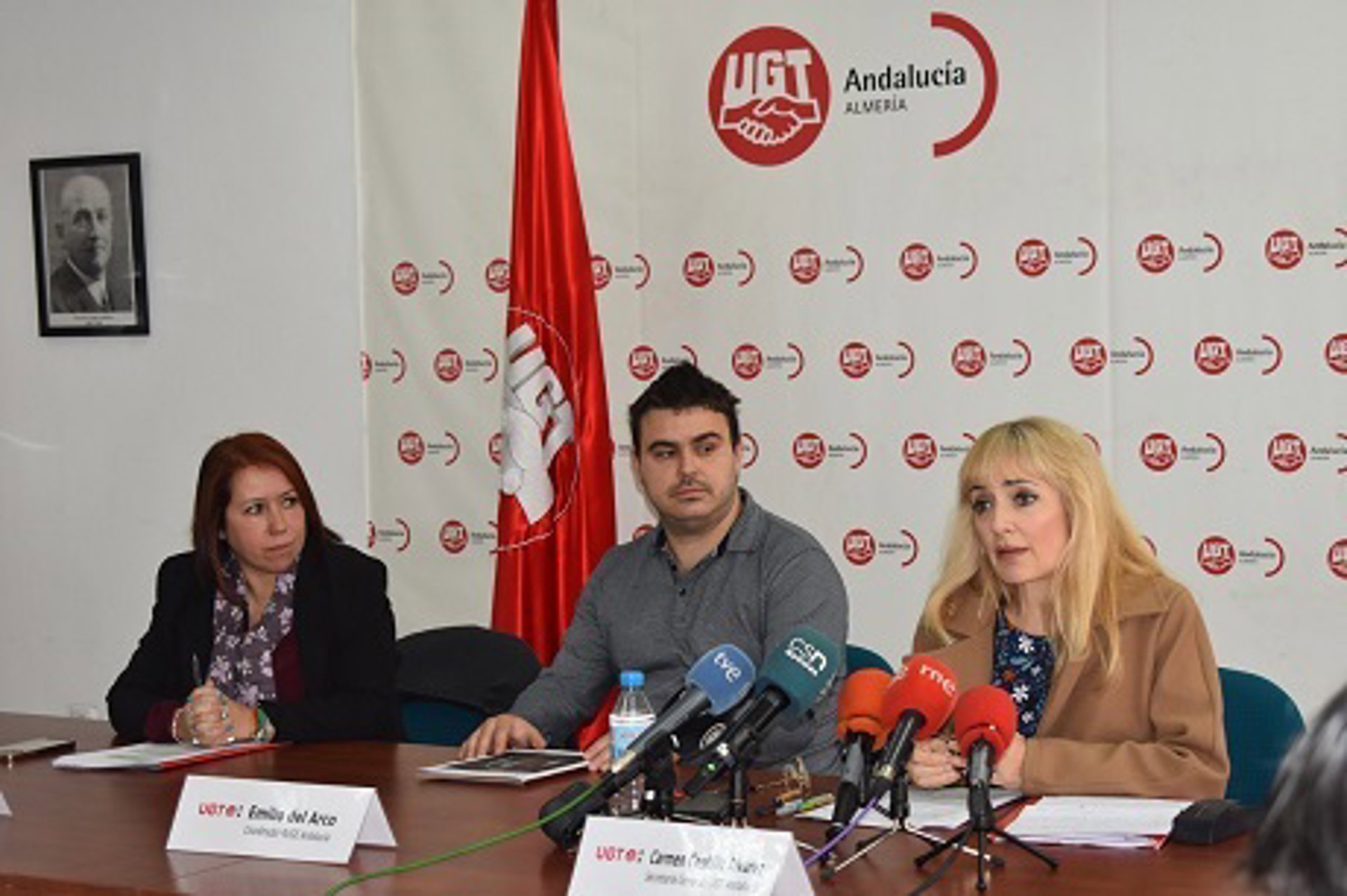 Acompañada de la secretaria general de UGT Almería, Carmen Vidal, y el coordinador regional de RUGE Andalucía, Emilio del Arco, Castilla ha incidido en la situación de los jóvenes andaluces, la cual está "marcada por la temporalidad y la precariedad en el mercado laboral".