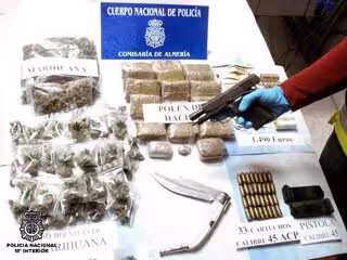 Según informó la Comisaría en una nota, la detención estuvo también motivada por un presunto delito de tenencia ilícita de armas, ya que los agentes intervinieron una pistola de fuego real del calibre 45 con dos cargadores y 33 cartuchos así como 1.490 euros obtenidos como beneficio de la venta de droga y un arma blanca.