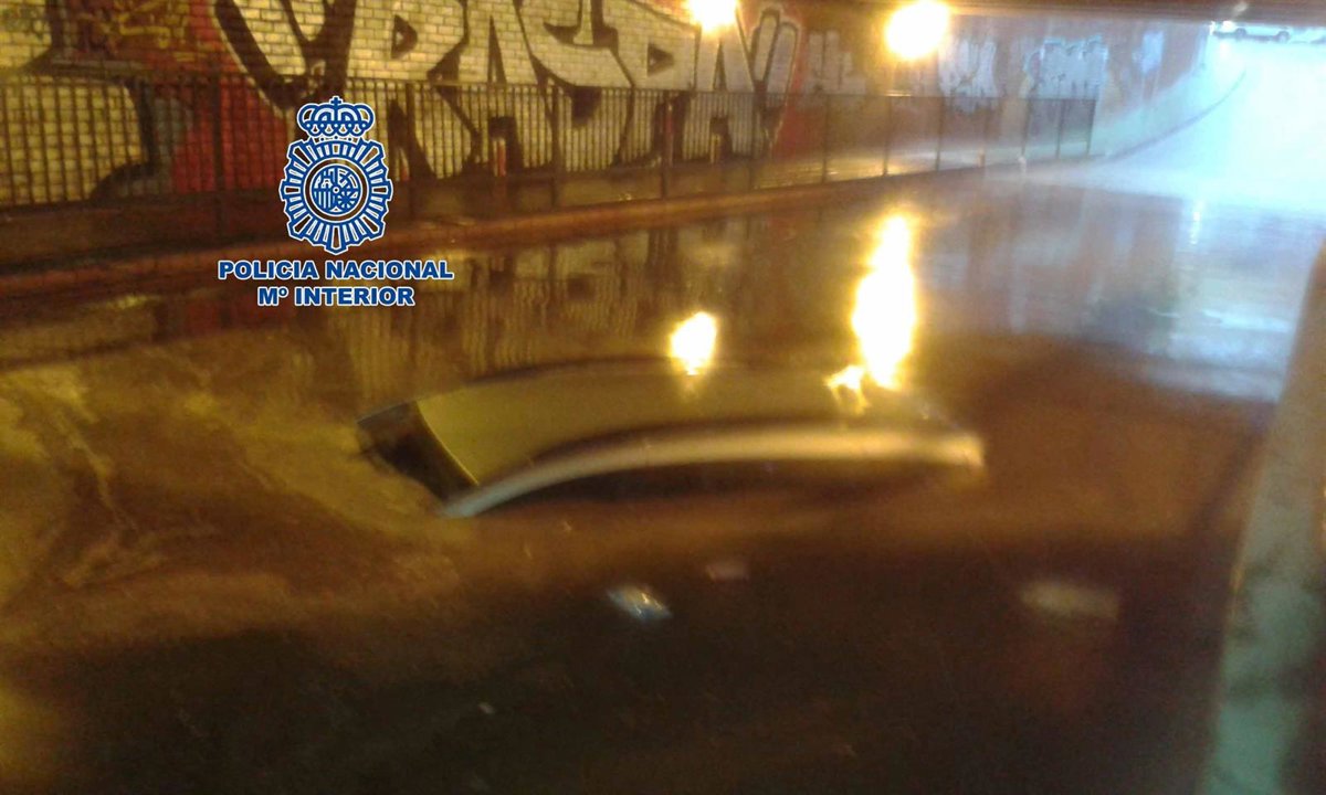Dos agentes de la Policía Nacional destinados en la Brigada de Seguridad Ciudadana de la Comisaría Provincial de Almería han rescatado este martes a un hombre y a su hijo del interior de un coche que se había quedado atrapado bajo el agua en un paso subterráneo de la capital por las fuertes lluvias.