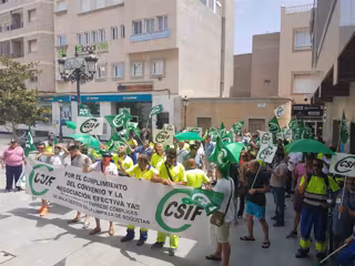 El sindicato CSIF Almería y los trabajadores de Urbaser de Roquetas de Mar se han manifestado este lunes para exigir la "negociación inmediata" del convenio colectivo, el cual está "bloqueado" desde su vencimiento en diciembre de 2015, ya que de lo contrario convocarán una huelga de basuras a partir del 16 de agosto en la localidad, según ha acordado la asamblea general de trabajadores.
