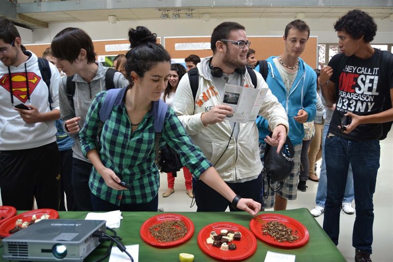 La Universidad de Almería ha organizado en el marco de la Semana de la Ciencia una degustación de insectos que tendrá continuidad este jueves en la que han participado alumnos de Secundaria guiados por el profesor del departamento de Bilogía y Geología, Fernando García Barroso, quien lleva años trabajando con estos ejemplares para acuicultura en su grupo de investigación.