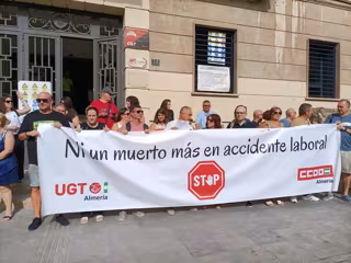 Los representantes provinciales de los sindicatos CCOO y UGT en Almería han reclamado este lunes el cumplimiento de los convenios colectivos tras el accidente laboral mortal que tuvo lugar sobre las 18,00 horas del pasado día 20, en el que un trabajador falleció al precipitarse desde unos seis metros de altura en la construcción de un edificio en la calle Real de Almería, lo que indica que estaba activo fuera de los límites horarios del acuerdo de construcción.