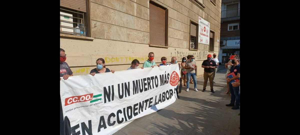 Ambos sindicatos han llevado a cabo este martes una concentración silenciosa en la capital para exigir actuaciones "urgentes" para "acabar con la siniestralidad laboral", que, según han remarcado, se están convirtiendo en la "nueva pandemia por falta de implicación empresarial", ya que en 2021 son 26 los trabajadores fallecidos en Andalucía, cinco de ellos en Almería.