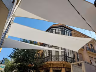 El objetivo de esta actuación es la de proteger del sol entornos peatonales y comerciales de esta ciudad. El tejido de estos toldos es ignífugo, de polietileno de alta densidad y diseñado para combinar máxima protección solar, resistencia y durabilidad permitiendo, además, el paso de aguas para evitar acumulación de lluvias".