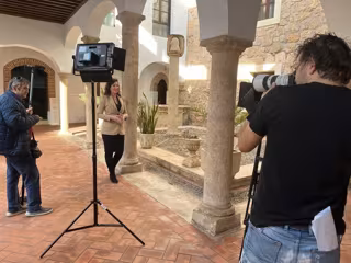 La alcaldesa de Almería, María del Mar Vázquez, en la grabación del mensaje de Navidad. - AYUNTAMIENTO DE ALMERÍA
