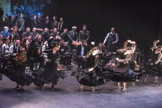 'Los Reyes Magos de Oriente' y 'Su mirada' fueron los siguientes temas propios en aparecer, antes de la actuación del grupo de Acaaf, la academia de Inka Díaz, que también mostró "apego a la tradición" con el cuerpo de baile ataviado con mandiles, bordando tientos y tangos como 'Camino de Egipto' o 'Ven a mi pozo'.