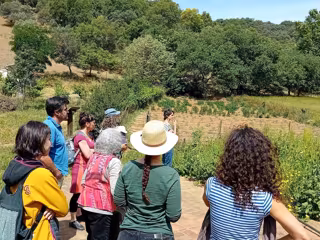 La primera de las Aulas de Agroecología celebras se ha realizado en la finca Riscos Altos, en Cazalla de la Sierra (Sevilla). En esta visita los asistentes han podido conocer un espacio de 40 hectáreas de dehesa, así como otras 15 de olivar, junto a otros espacios de huertas, frutales y viñas. A su vez, posee ganadería extensiva, que contribuye a la conservación y mantenimiento del entorno natural con cabaña ganadera con cerdos ibéricos en ecológico, ochenta cabezas de ovino y un rebaño de cabras, que, a su vez, le permite elaborar quesos. Riscos Altos también realiza turismo rural, con cocina y materias primas de la propia finca y agricultura ecológica. La segunda visita ha tenido lugar en la finca La Alegría, en Arcos de la Frontera.