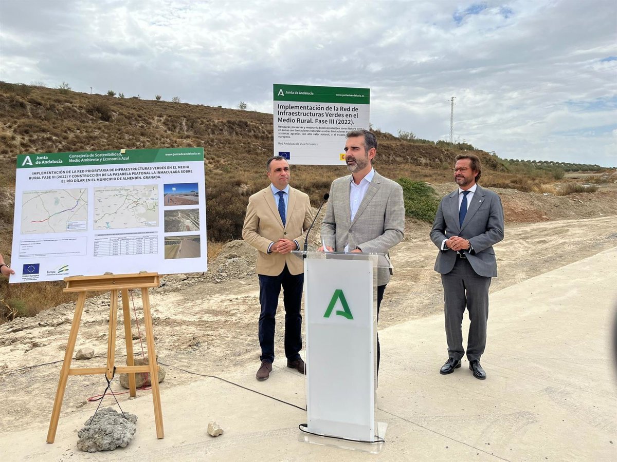 El consejero de Sostenibilidad, Medio Ambiente y Economía Azul, Ramón Fernández-Pacheco, ha valorado este lunes las mejoras en la red andaluza de vías pecuarias en las que la Junta invierte 31,5 millones de euros, en una visita a Alhendín, en el área metropolitana de Granada, en que ha conocido el resultado de las obras que mejoran la seguridad de tránsito y fomentan el uso lúdico de la vía en la conocida como Colada de la Malahá.