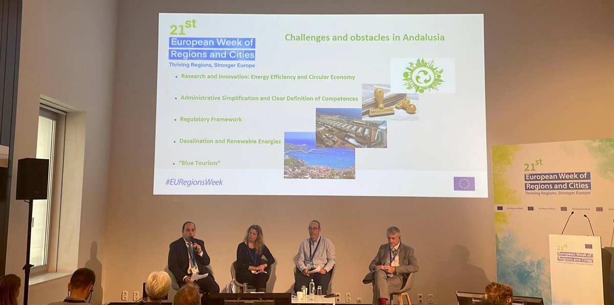 La consejería de Sostenibilidad, Medio Ambiente y Economía Azul ha participado esta semana en la '21 Semana Europea de las Regiones y Ciudades', un foro organizado por la dirección general de Asuntos Marítimos y Pesca (MARE) de la Comisión Europea en el que se ha debatido cómo las regiones y ciudades costeras trabajan desde la innovación hacia la transición energética de los sectores de la Economía Azul.