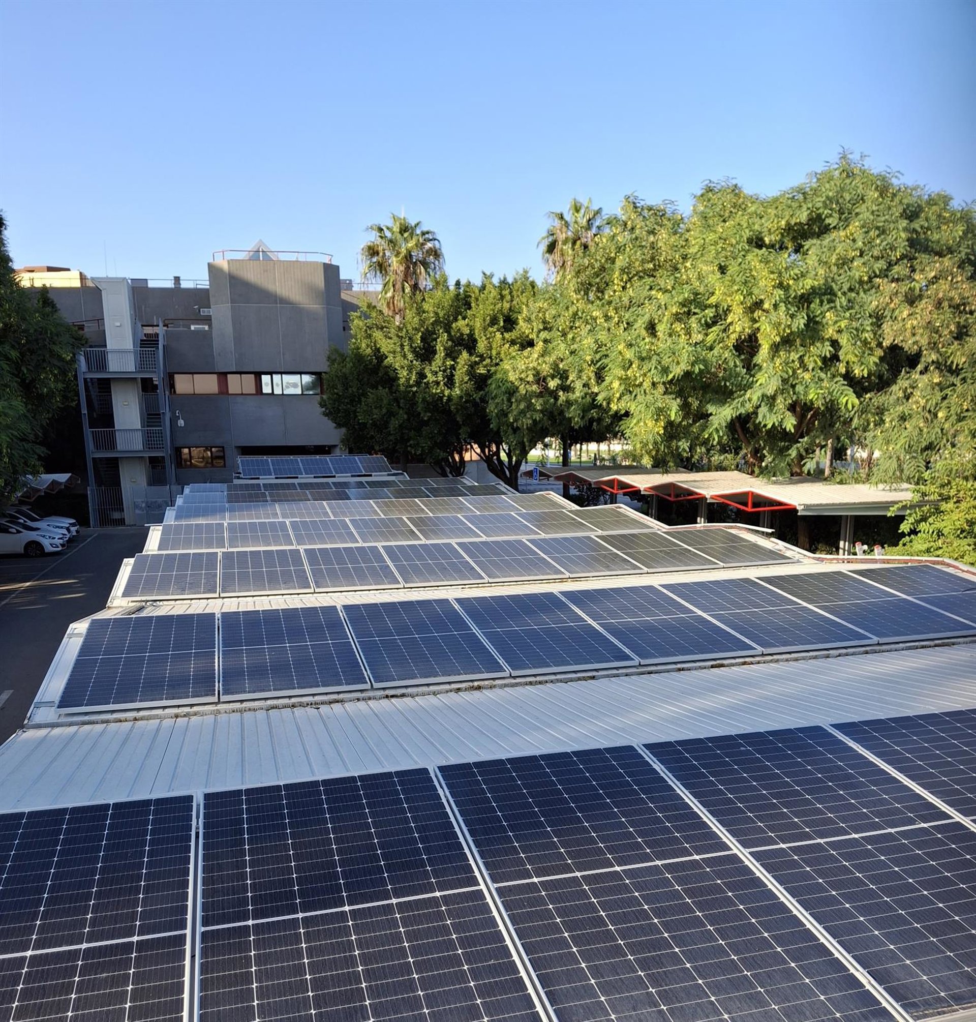 La nueva instalación de placas solares cuenta con un total de 340 módulos fotovoltaicos monocristalinos de 465 Wp y ocupa una superficie aproximada de unos 807 metros cuadrados (m2), repartidos entre la cubierta del edificio de Conservación y las marquesinas del aparcamiento de Dirección.