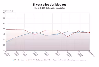Evolución del voto a los bloques de izquierda y derecha, elecciones 10 de noviembre de 2019 (ministerio del interior) - EPDATA