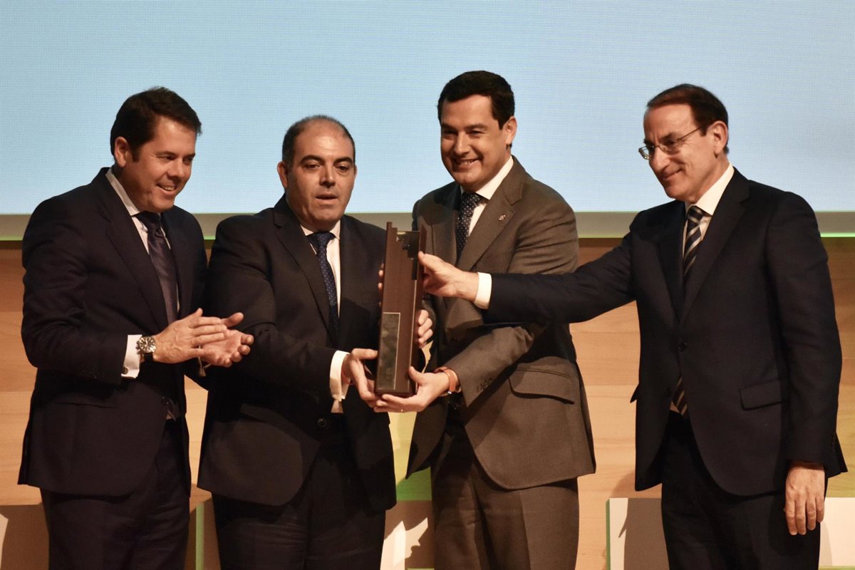 El presidente de ATA, Lorenzo Amor, entrega el Premio Autónomo del Año 2019 al presidente de la Junta, Juanma Moreno, en una imagen de archivo de noviembre de 2019. - JUNTA DE ANDALUCÍA - Archivo