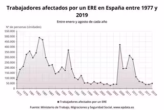 Trabajadores afectados por un ERE en España durante los ocho primeros meses del año - EPDATA