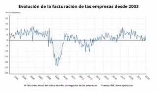 Variación anual de la facturación de las empresas en España hasta enero de 2020 (INE) - EPDATA