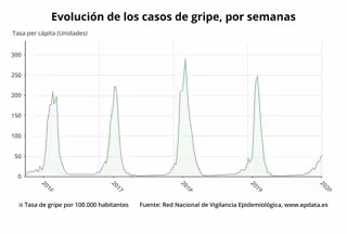 Estos gráficos acompañan a la noticia titulada: Comienza la epidemia de la gripe en España, con 54,6 casos por 100.000 habitantes