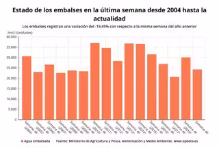 Estado de los embalses en la semana 46 desde 2004 hasta 2019 (Ministerio para la Transición Ecológica) - EPDATA
