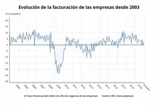 La facturación de las empresas modera su avance en octubre tras subir un 2,1%