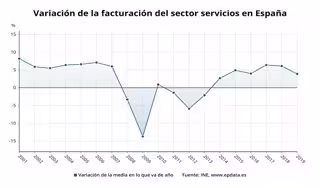 Variación de la facturación del sector servicios en España, año a año (INE) - EPDATA