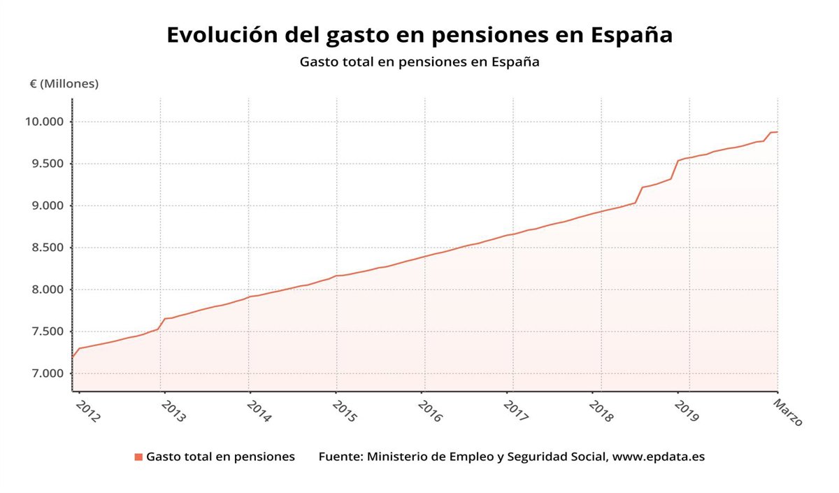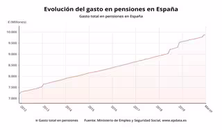 Evolución del gasto en pensiones en España hasta marzo de 2020 (INE) - EPDATA