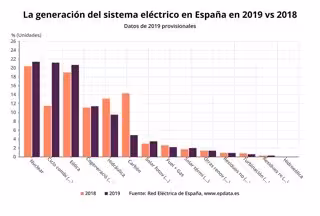 La generación del sistema eléctrico en España en 2019 vs. 2018 (Red Eléctrica de España) - EPDATA