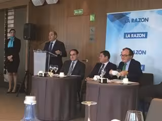 El presidente nacional de ATA, Lorenzo Amor, durante su intervención en el desayuno de La Razón. - ATA