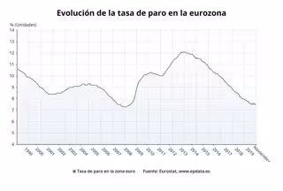 Evolución de la tasa de paro en la eurozona hasta noviembre de 2019 (Eurostat) - EPDATA
