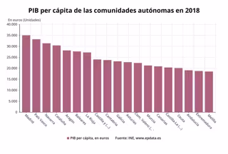 PIB per cápita de las comunidades autónomas en 2018 - EPDATA