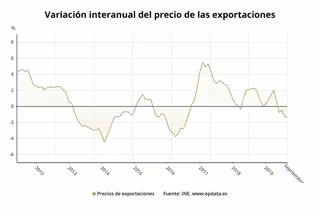 Variación interanual del precio de las exportaciones de la industria hasta septiembre de 2019 (INE) - EPDATA