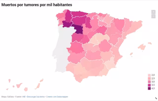 Muertes por tumores por mil habitantes en 2018 en cada provincia - EPDATA