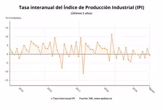 Variación anual del índice de producción industrial, hasta agosto de 2019 (INE) - EPDATA