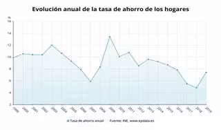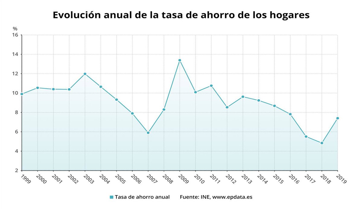 La tasa de ahorro de los hogares subió en 2019 hasta el 7,4%, su valor más alto desde 2013