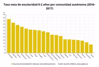 Tasa neta de escolaridad 0-2 años por comunidad autónoma (20162017), Save The Children - EPDATA