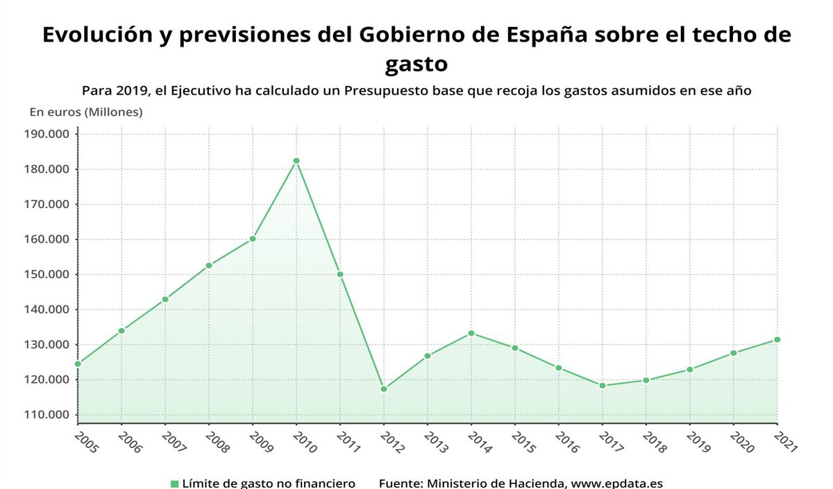 Evolución del techo de gasto y previsiones del Gobierno hasta 2021