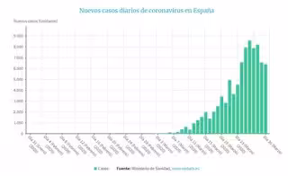 Gráfico con evolución de nuevos casos diarios de coronavirus en España - EPDATA