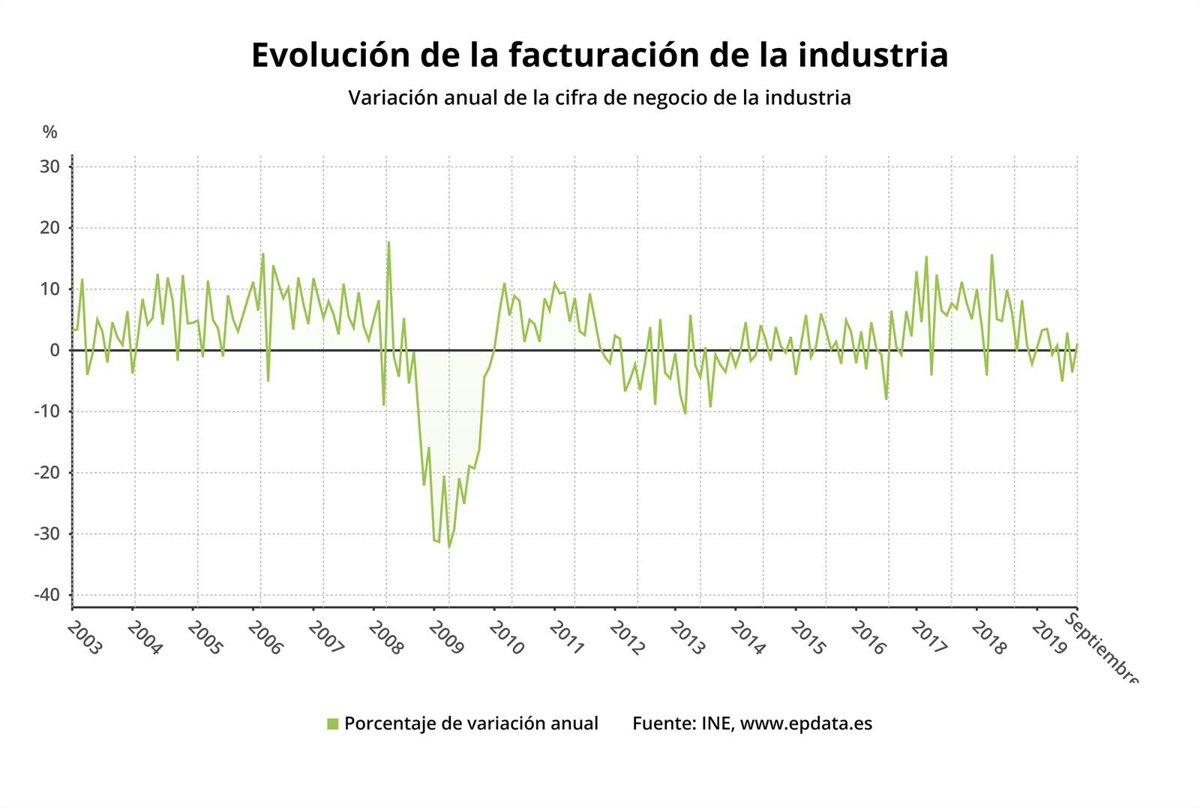 Evolución de la facturación de la industria hasta septiembre de 2019 (INE) - EPDATA