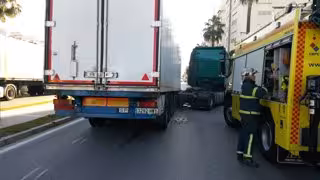 Bomberos están trabajando para liberar la cabeza tractora del remolque con cojines neumático y poder despejar la calzada, por lo que la actuación no ha concluido aún.