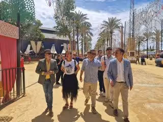 El portavoz de Adelante Andalucía, José Ignacio García, en el centro de la imagen, este jueves en su visita a la Feria de Jerez de la Frontera (Cádiz). - ADELANTE ANDALUCÍA