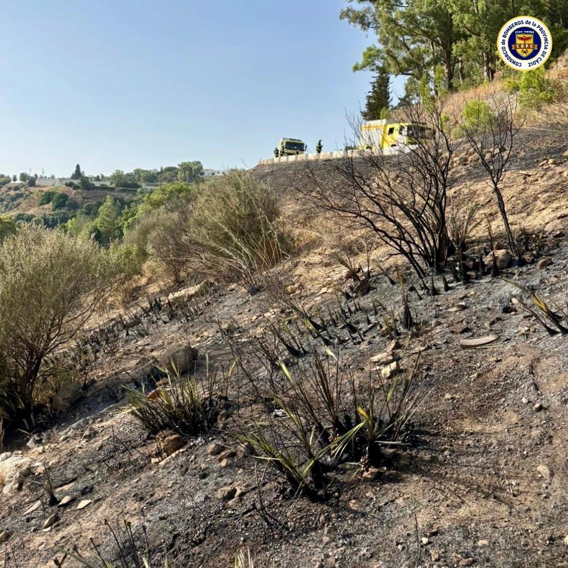 Superficie quemada por un incendio de pasto y matorral en Medina - CONSORCIO DE BOMBEROS DE LA PROVINCIA DE CÁDIZ
