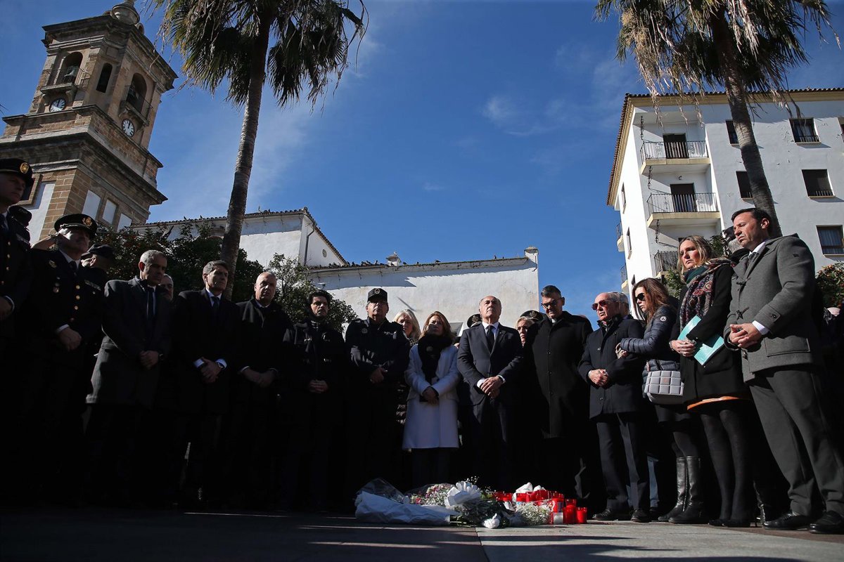 El alcalde de Algeciras en el minuto de silencio guardado en la plaza Alta por la muerte del sacríistán de La Palma. - Nono Rico