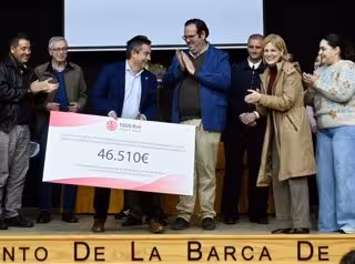 La alcaldesa de Jerez (Cádiz), María José García-Pelayo, junto al alcalde de La Barca de la Florida, Alejandro López, ha presidido el acto de entrega del cheque de la recaudación obtenida en la VII Carrera del Barro 2025, organizada por el Ayuntamiento de esta Entidad Local Autónoma y la Asociación '1.000 kilómetros contra el Cáncer, en colaboración con el Ayuntamiento de Jerez, y que ha contado con la presencia de la teniente de alcaldesa de Desarrollo Rural, Susana Sánchez, y el delegado de Deportes, Tomás Sampalo.