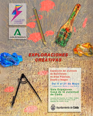 La Casa de la Juventud del Ayuntamiento de Cádiz acogerá de la exposición 'Exploraciones Creativas: Expresiones del Bachillerato Artístico', una muestra organizada por la Escuela de Arte y Superior de Diseño de Cádiz con la colaboración de la Delegación de Juventud e Infancia que exhibe los trabajos realizados por el alumnado de Bachillerato de Artes Plásticas, Diseño e Imagen.