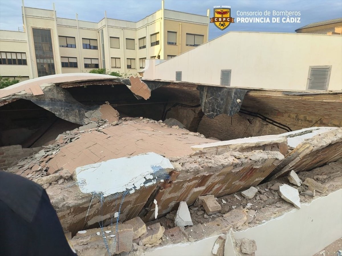 El Consorcio de Bomberos de la Provincia de Cádiz ha constadado que una posible rotura de varios de sus atirantados ha producido la caída de gran parte de una bóveda de cerramiento de cubierta, precipitándose sobre una segunda bóveda del templo.