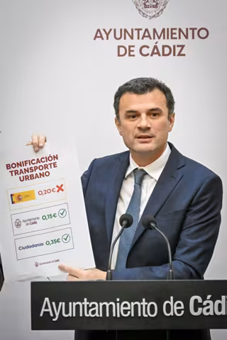 El alcalde de Cádiz, Bruno García, ha anunciado que el Ayuntamiento mantendrá la bonificación de 15 céntimos para el bonobús en el transporte urbano para el próximo año 2025 y ha pedido al Gobierno de la nación que haga lo mismo con su aportación de 20 céntimos con el objetivo de que los usuarios del transporte público de la capital sigan pagando 0,35 céntimos por bonobús ya que, en el caso de que renuncien a hacer esta bonificación, el precio se situará en 0,55 céntimos.