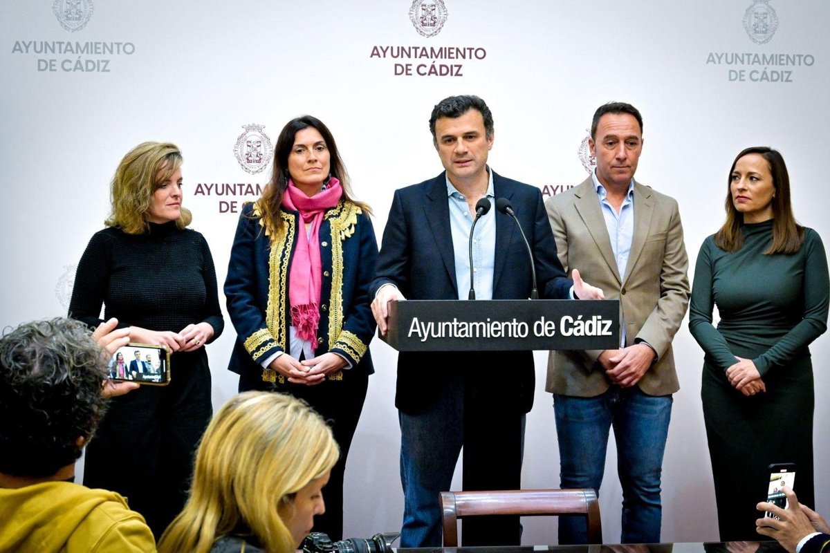 El alcalde de Cádiz, Bruno García, junto a otros concejales de su Gobierno como el primer teniente de alcalde, José Manuel Cossi, en rueda de prensa. - AYUNTAMIENTO DE CÁDIZ