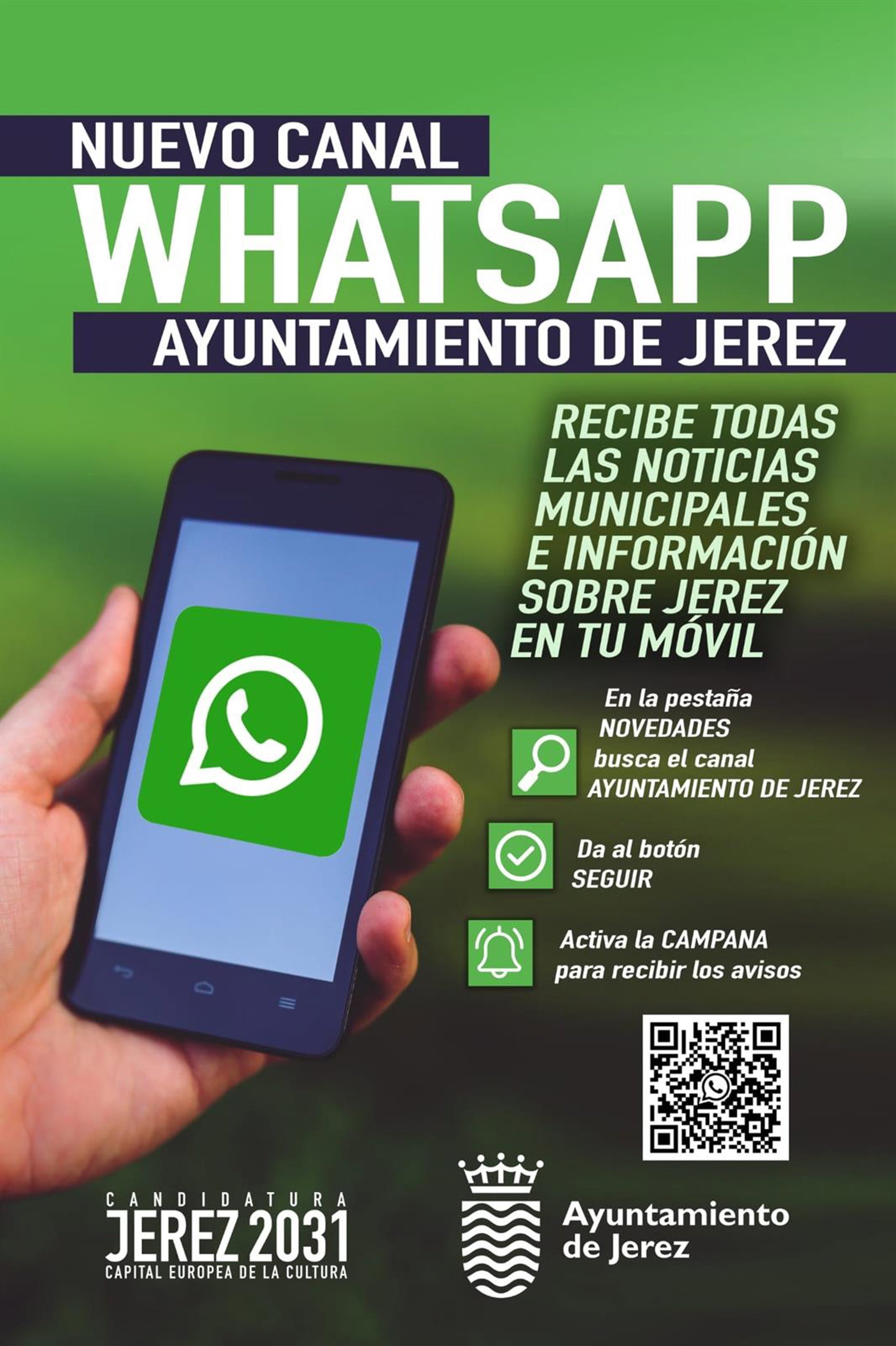 El Ayuntamiento de Jerez de la Frontera ha anunciado que ha puesto en marcha unos canales en las plataformas WhatsApp y Telegram con el objetivo de facilitar a la ciudadanía información directa y de utilidad a través del dispositivo móvil, utilizando ambas aplicaciones de mensajería como soporte.