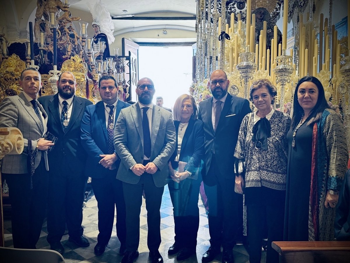 Imagen de este Jueves Santo de la visita del alcalde de El Puerto de Santa María, Germán Beardo, a la Hermandad de Humildad y Paciencia. - AYUNTAMIENTO DE EL PUERTO